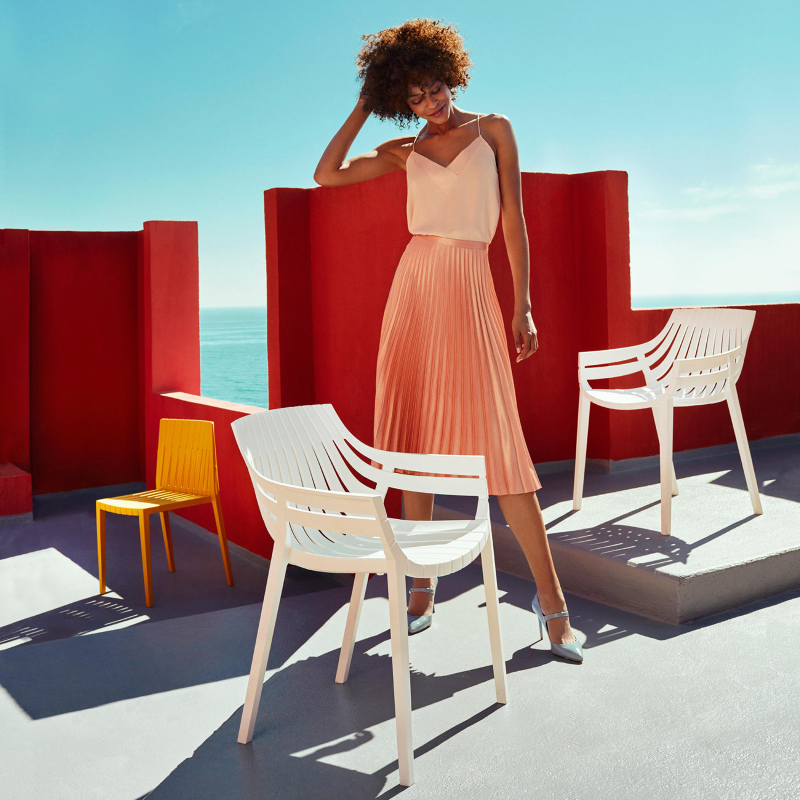 The Spritz Armchair, designed by Archirivolto Design for Vondom, captures the perfect balance between fresh Mediterranean style and modern functionality. Inspired by the crisp and clean lines of white wooden fences, this chair brings a sense of openness and lightness to any space.