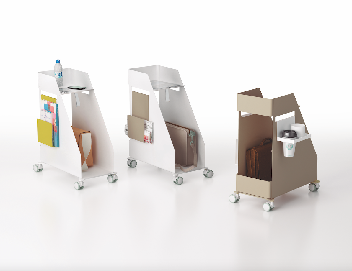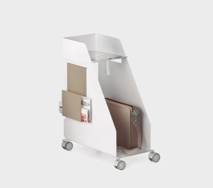 Auxiliary personal furniture, designed to optimize workspaces thanks to its functionality and mobility. Includes a handle which facilitates it’s movement and a magazine rack. The complements can be hanged on one side or another to improve the ergonomics of the user.