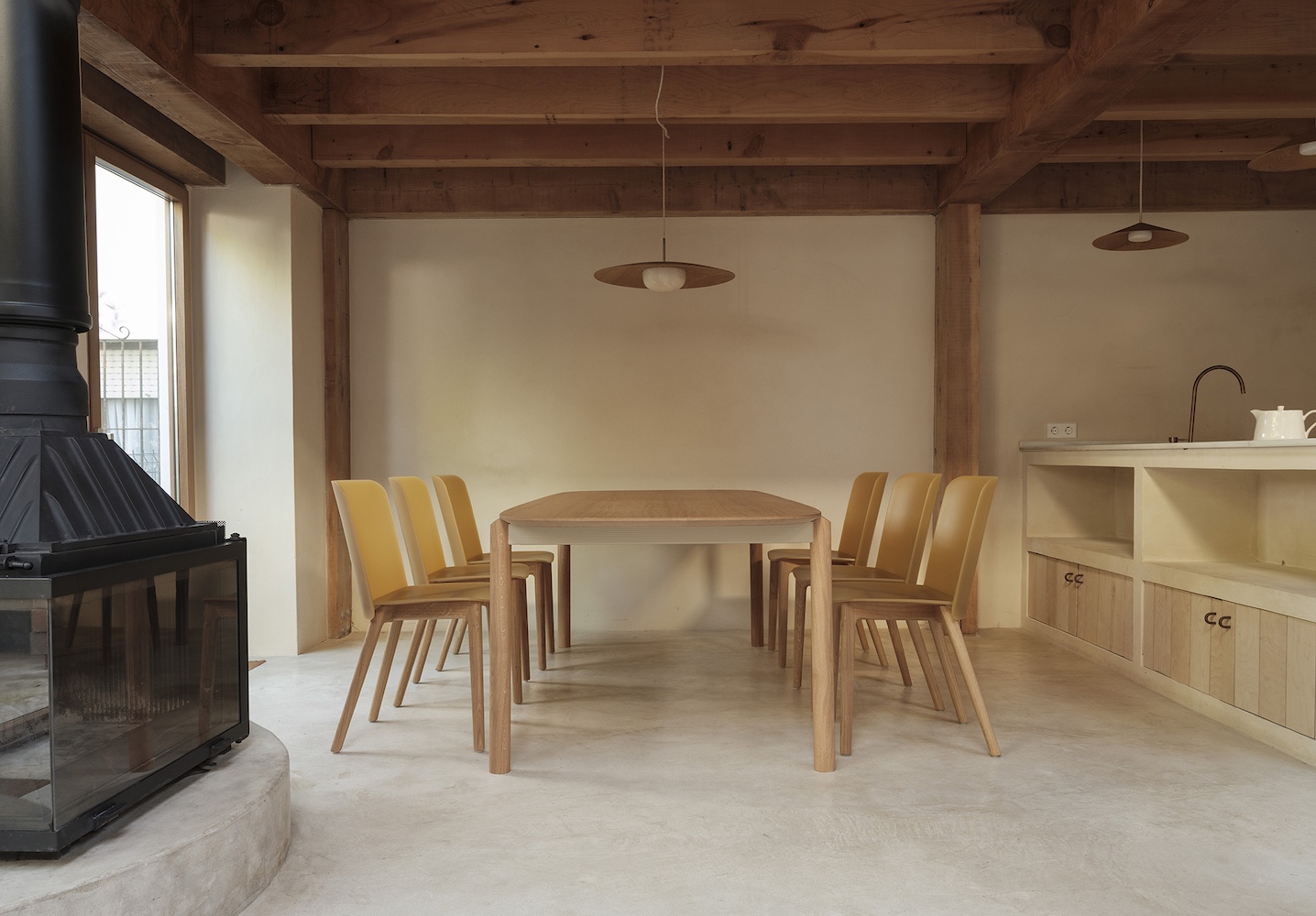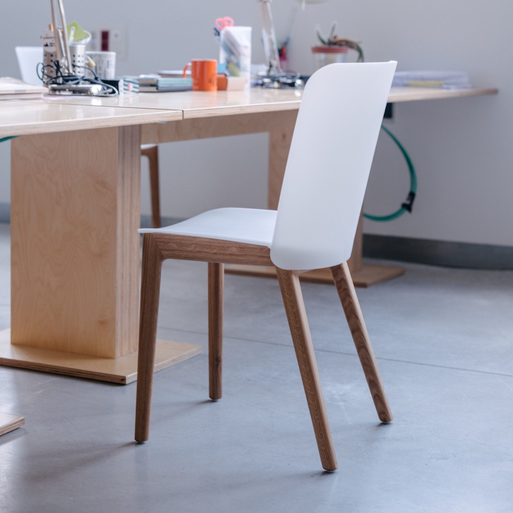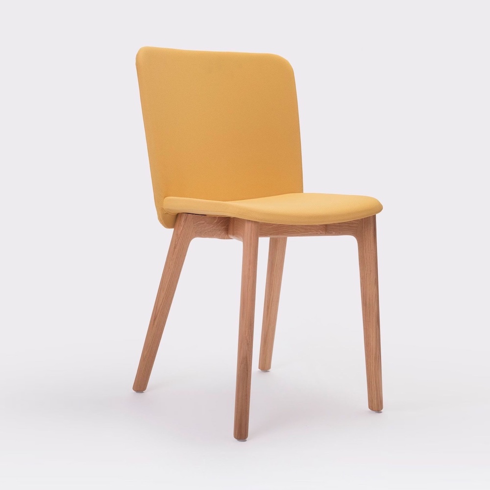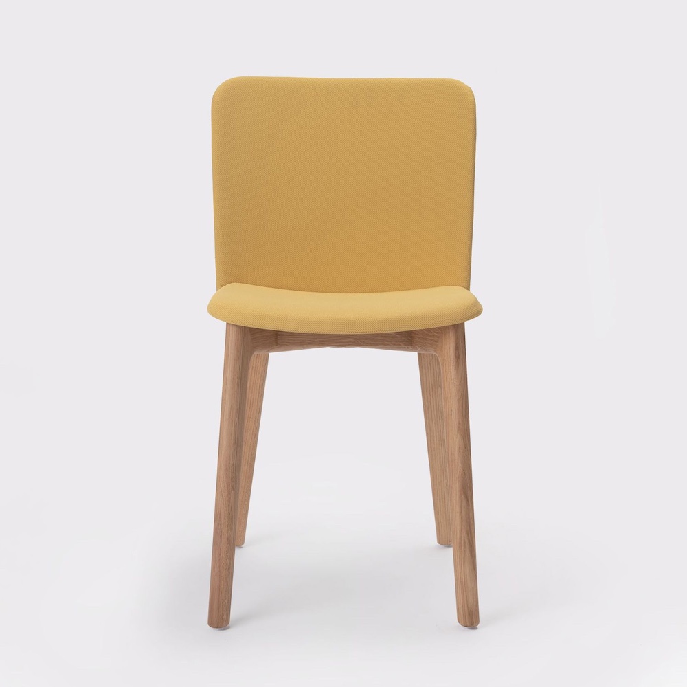 Solid Oak frame with PEFC certification. Shell made of a special translucent impact-textured copolymer for a matte finish. Upholstered finish also available.