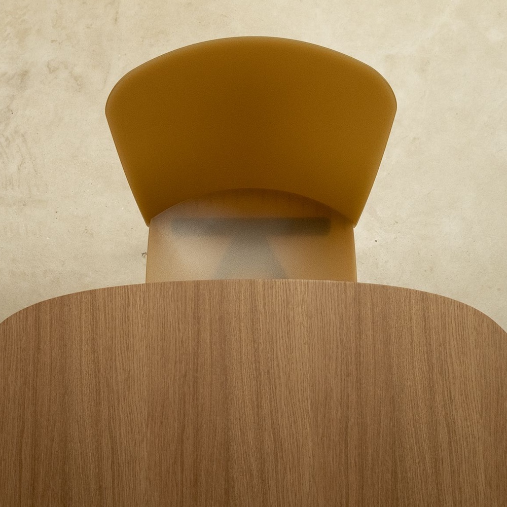 The particularity of the material offers unique properties, giving it the ability to interact with light and transmit how that energy from the natural environment, such as sunlight, is activated and used, as if it were a combination of materials. A single-shell chair with the look of a traditional two-part chair, crafted from a single piece. A collection that combines backrest and seat into one piece, offering functionality in many different situations and environments.