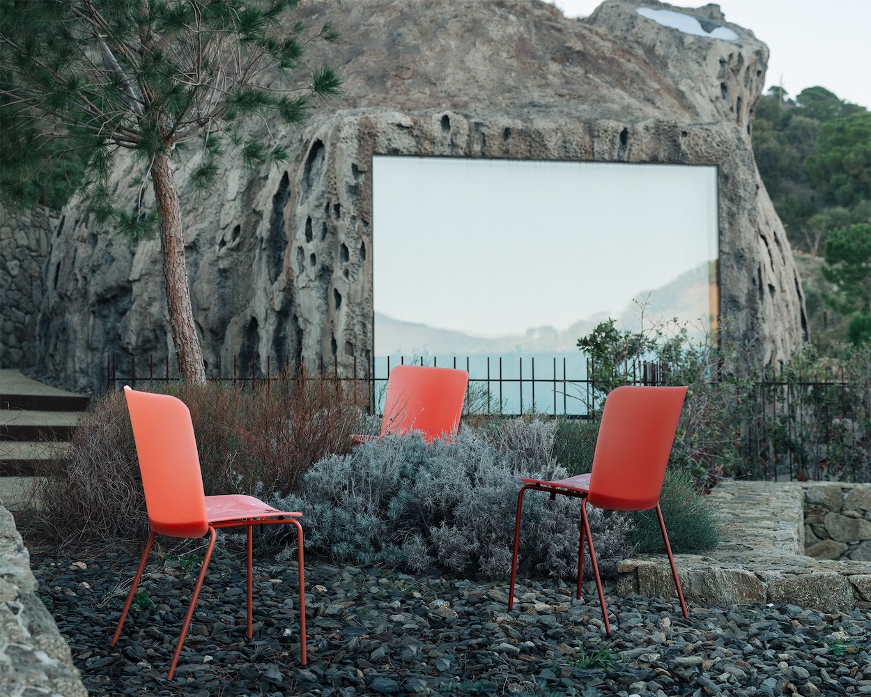 The particularity of the material offers unique properties, giving it the ability to interact with light and transmit how that energy from the natural environment, such as sunlight, is activated and used, as if it were a combination of materials. A single-shell chair with the look of a traditional two-part chair, crafted from a single piece. A collection that combines backrest and seat into one piece, offering functionality in many different situations and environments.