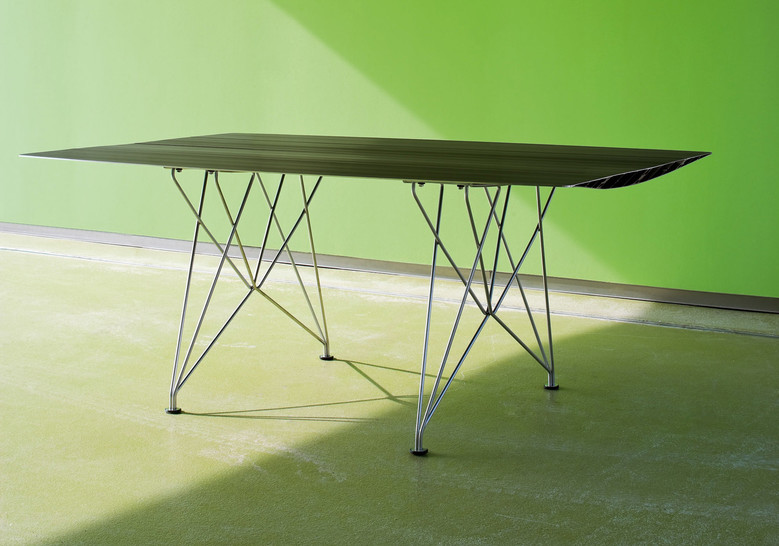 The Table B, which inaugurated the Extrusions Collection in 2009, can reach up to five metres using a simple profile of extruded aluminium. Its apparent simplicity covers a complex technical development where important engineers have participated. The result is a piece of excelling craftsmanship, carrying the German designers character.
