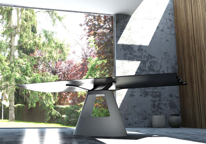 The Table B, which inaugurated the Extrusions Collection in 2009, can reach up to five metres using a simple profile of extruded aluminium. Its apparent simplicity covers a complex technical development where important engineers have participated. The result is a piece of excelling craftsmanship, carrying the German designers character.