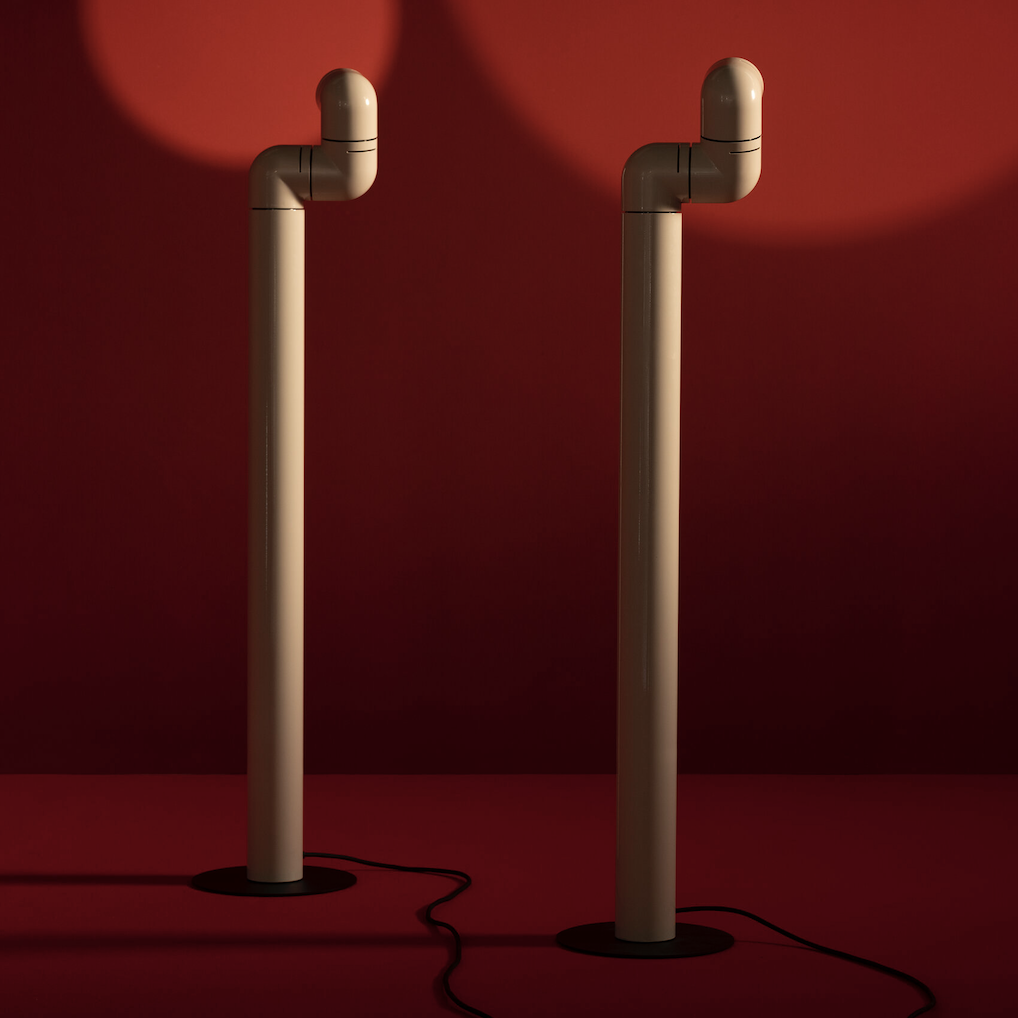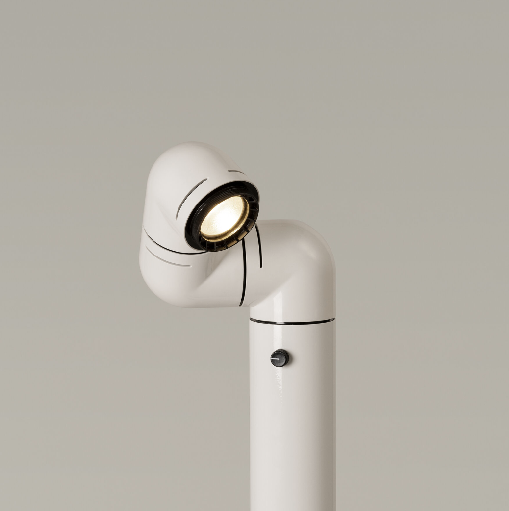 This friendly lamp, a revolutionary milestone in design, is essential in any context, directing light wherever it is needed. A synonym to good design, modernity and comfort. ABS plastic body and metal column.