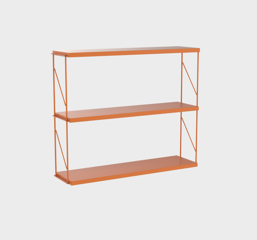 Wall unit. Shelves formed by two side supports and three painted steel shelves.