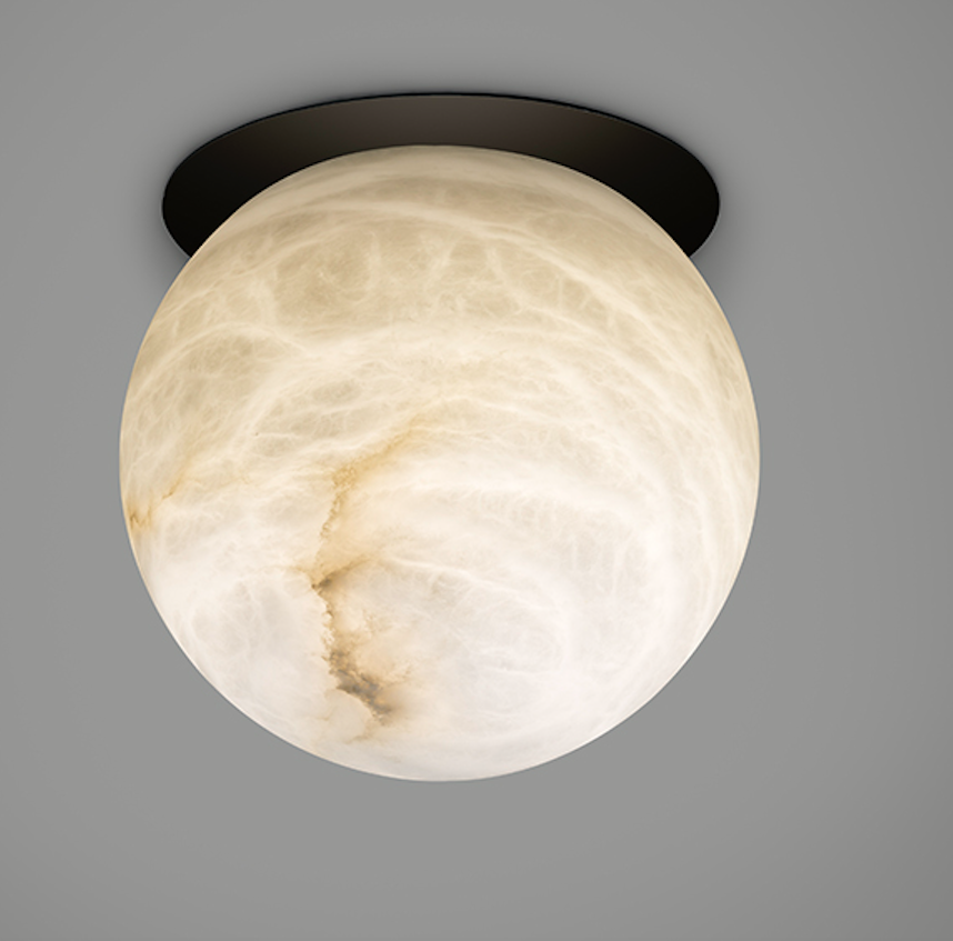 Tribeca is a beautiful collection of light fittings made with spherical alabaster shades. This stone, which comes from national quarries and has a great tradition in Spain, gives each screen a unique identity, with white and grayish veins, sometimes with some fascinating earthy hue and a smooth translucency.