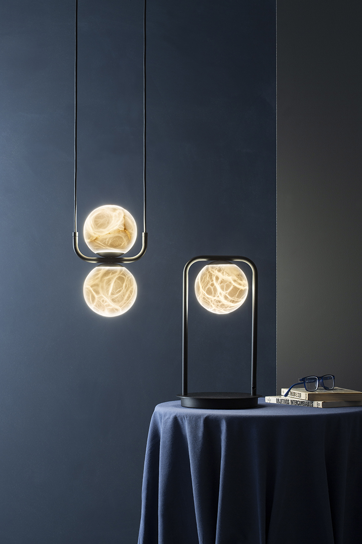 Tribeca is a beautiful collection of light fittings made with spherical alabaster shades. This stone, which comes from national quarries and has a great tradition in Spain, gives each screen a unique identity, with white and grayish veins, sometimes with some fascinating earthy hue and a smooth translucency.