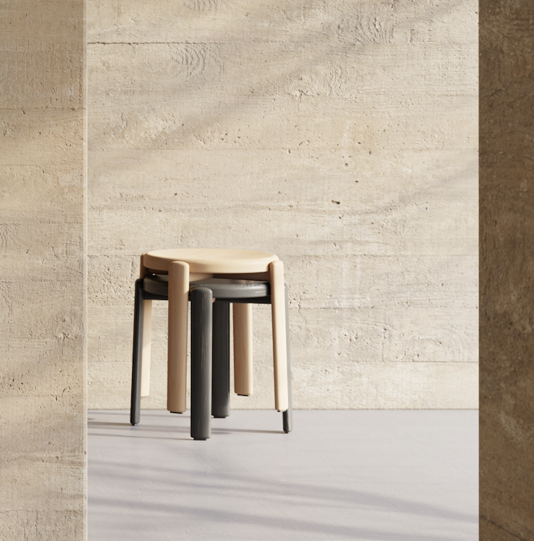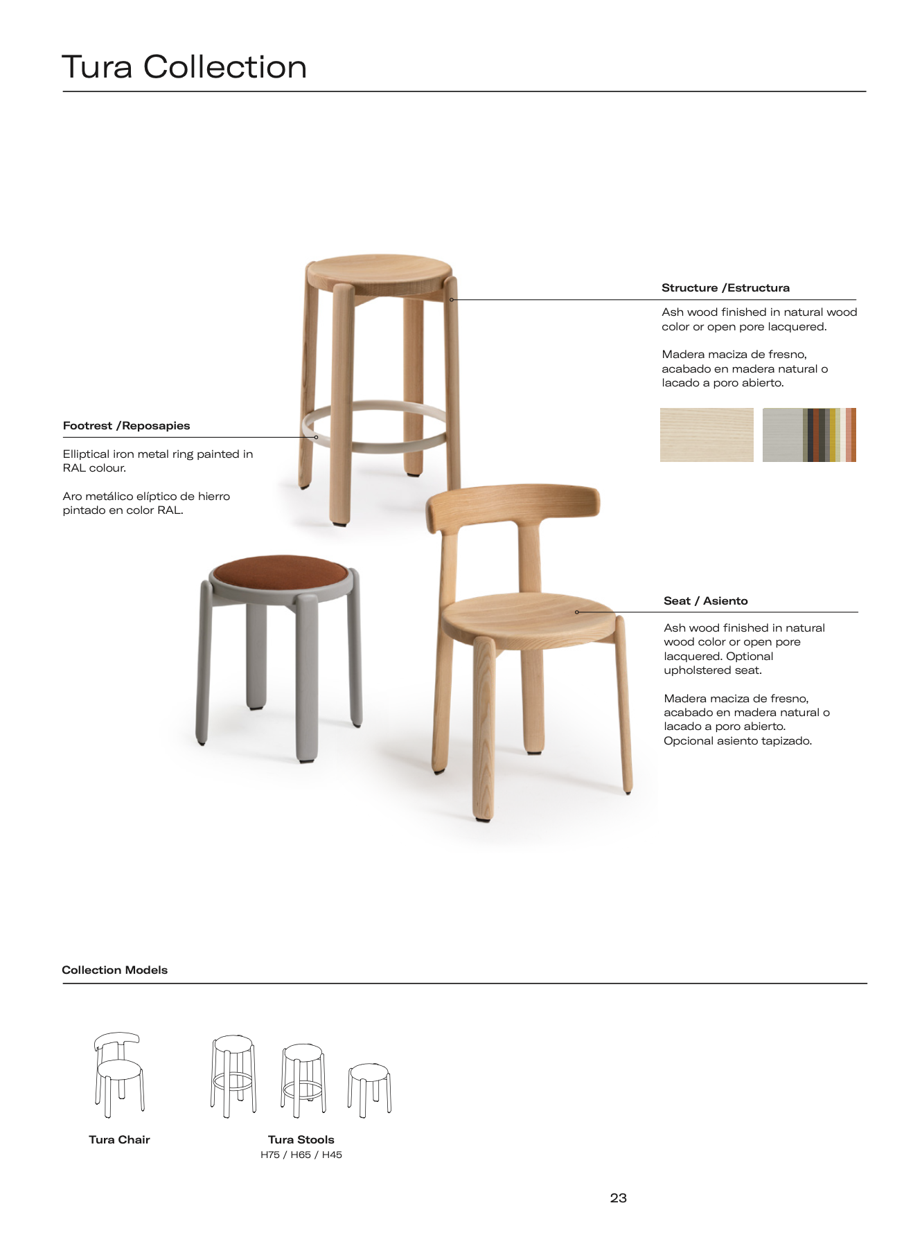 Available in three different heights, the Tura stools are characterised by their graphically distinctive silhouettes. They are seats with friendly, serene and elegant shapes. The solid wood with its rounded finishes also provides a very warm and pleasant feel to the piece.