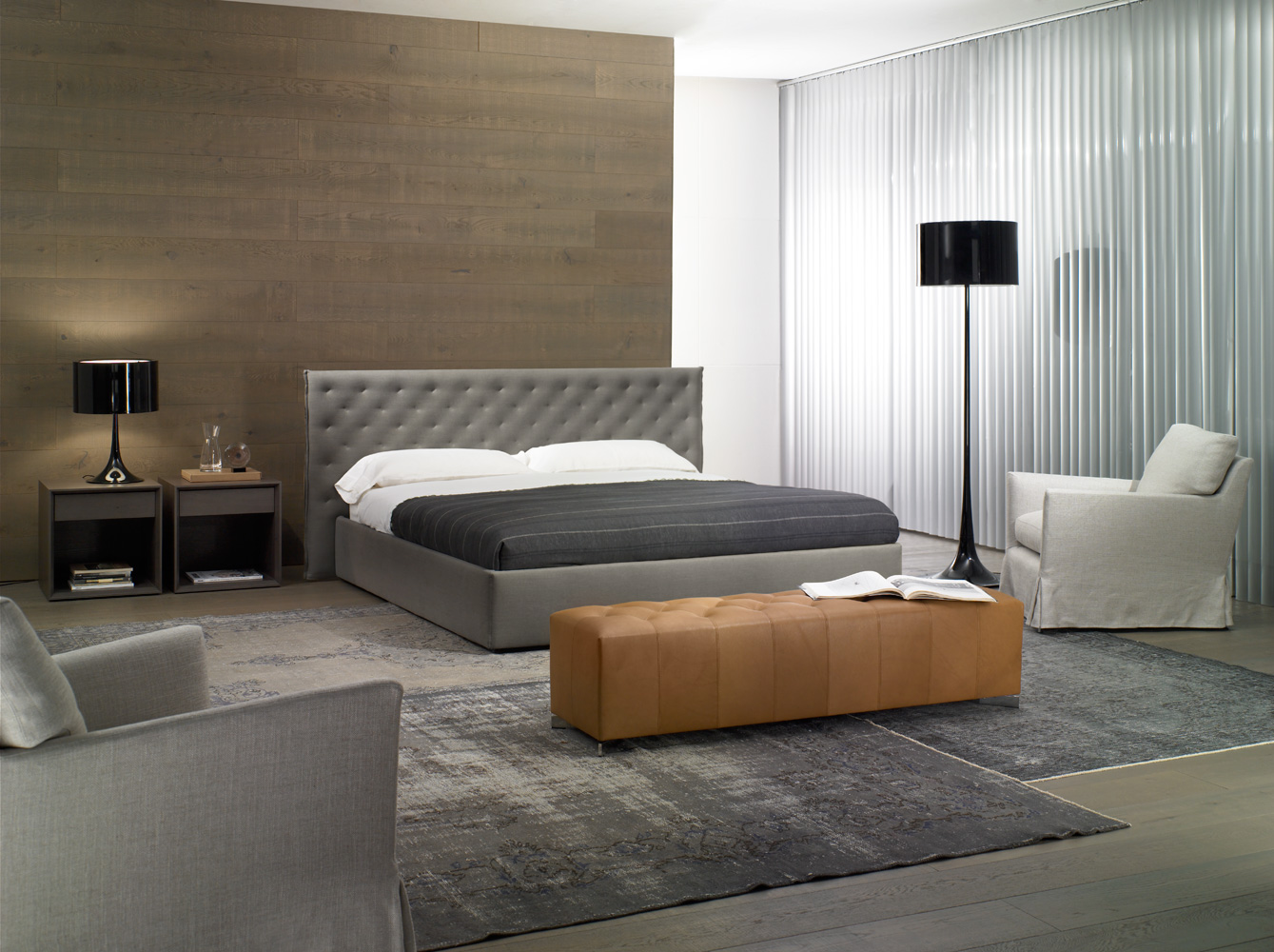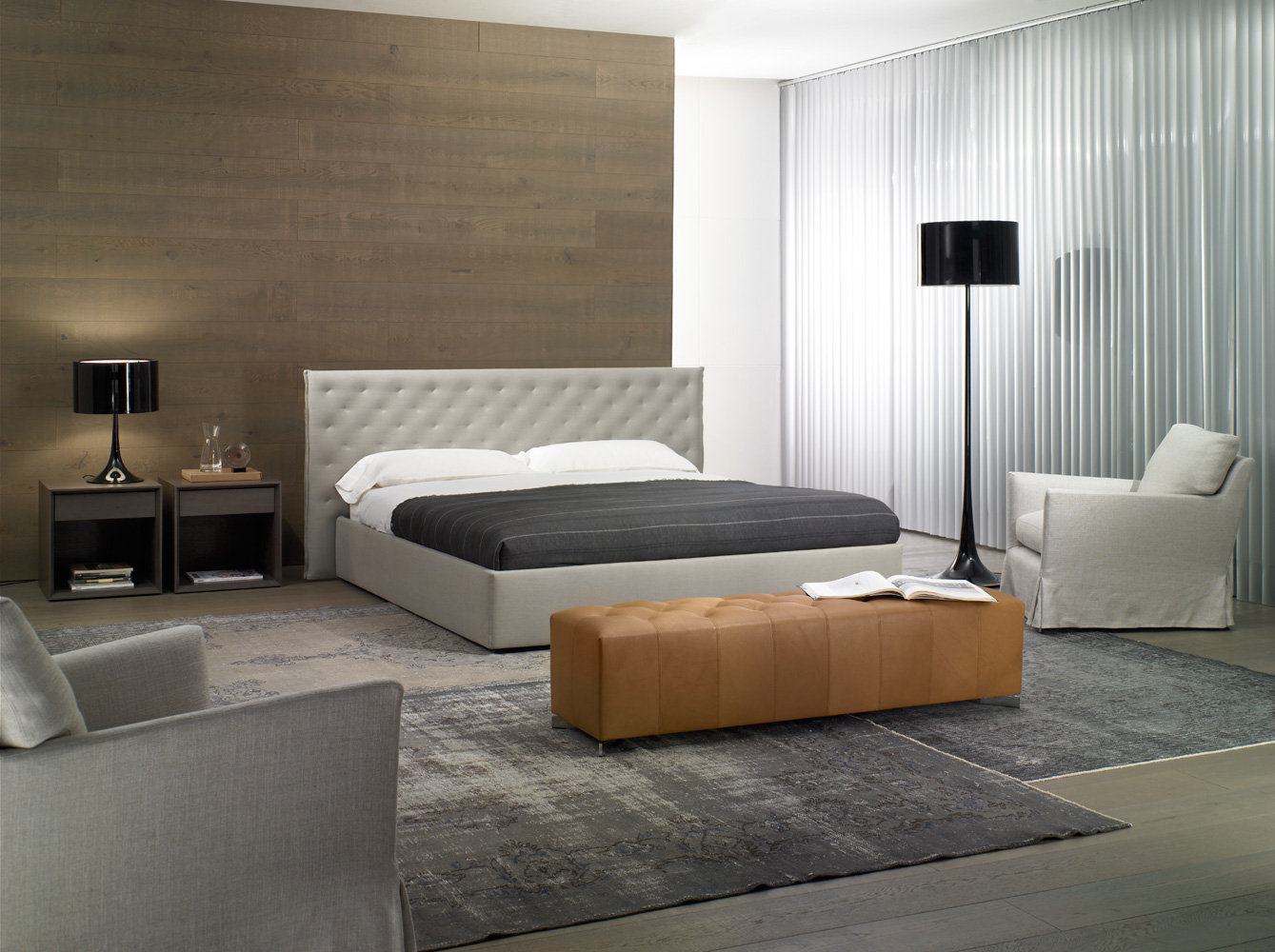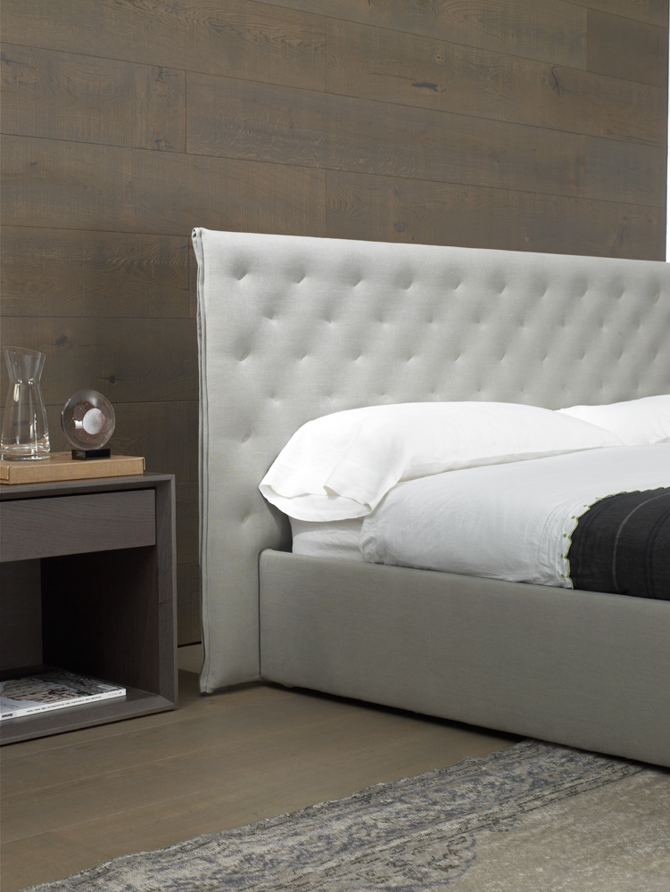 Valeria is a bed with clean and simple lines, with a touch of sophistication due to its capitoné with blunts. The thinness of the headboard as well as the frame allows it to be adapted to modern interiors where space is limited. It comes with a levelling system in order to adjust to the different sizes of slats and mattresses. The upholstery is completely removable and almost all parts can be detached.