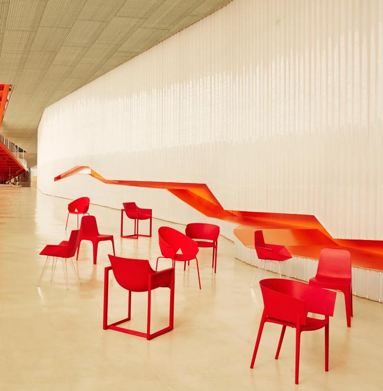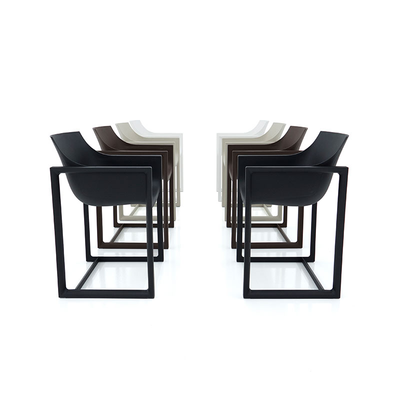 Crafted from injected polypropylene with fiberglass reinforcement, the Wall Street Armchair is lightweight, durable, and suitable for both indoor and outdoor spaces. Its sleek, sculptural form provides ergonomic comfort, while its stackable design adds versatility. Available in a range of contemporary finishes, it adapts effortlessly to modern settings, from stylish terraces to refined interiors.